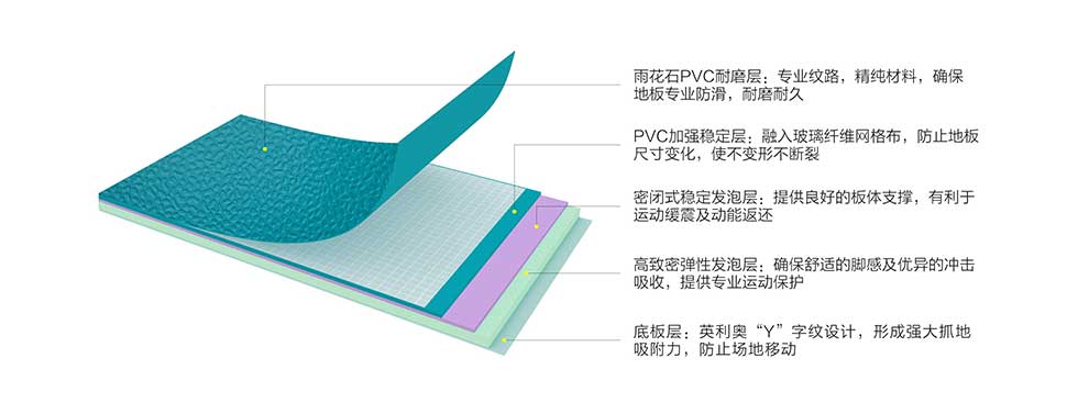 优质材料、超厚的耐磨层厚度、考究的“雨花石”纹理相互作用,使地板面层具有充足且适度的摩擦力,有效防止运动滑倒性伤害,同时还保证移动及原地转动的灵活性,确保运动安全及尽情跳动的运动发挥。