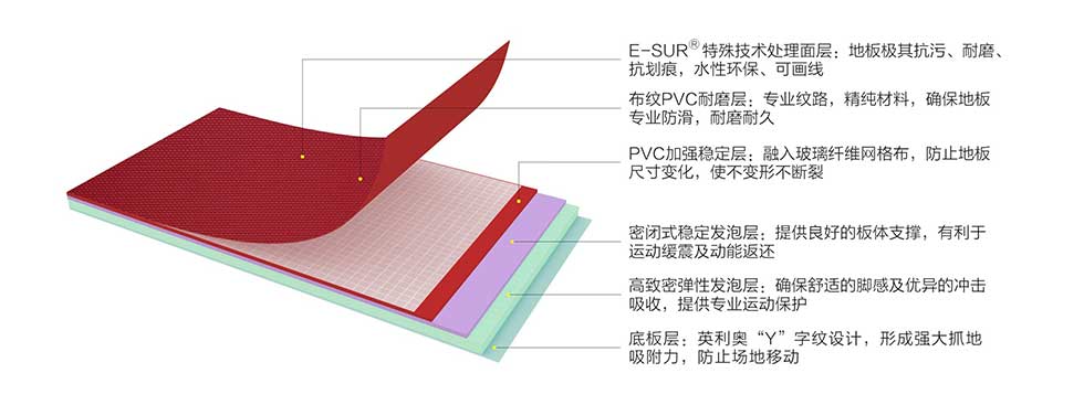 精纯PVC材料与双层发泡结构,还可确保地板稳定的回弹动力,优秀的能量返还,不存在弹性死点,为运动者提供十足的动力支持,助力状态的发挥。