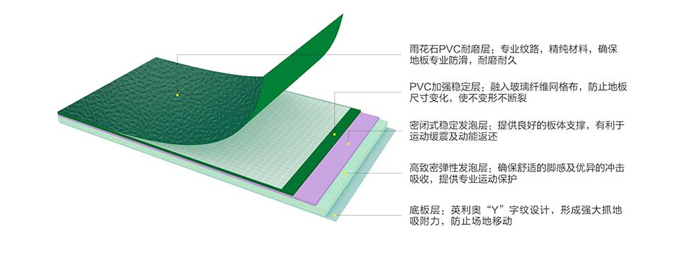 优质材料、超厚的耐磨层厚度、考究的“雨花石”纹理相互作用,使地板面层具有充足且适度的摩擦力,有效防止运动滑倒性伤害,同时还保证移动及原地转动的灵活性,确保运动安全及尽情跳动的运动发挥。