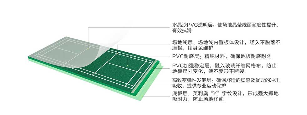 产品适用:国内外羽毛球中高端大型运动场馆及中小型比赛场地